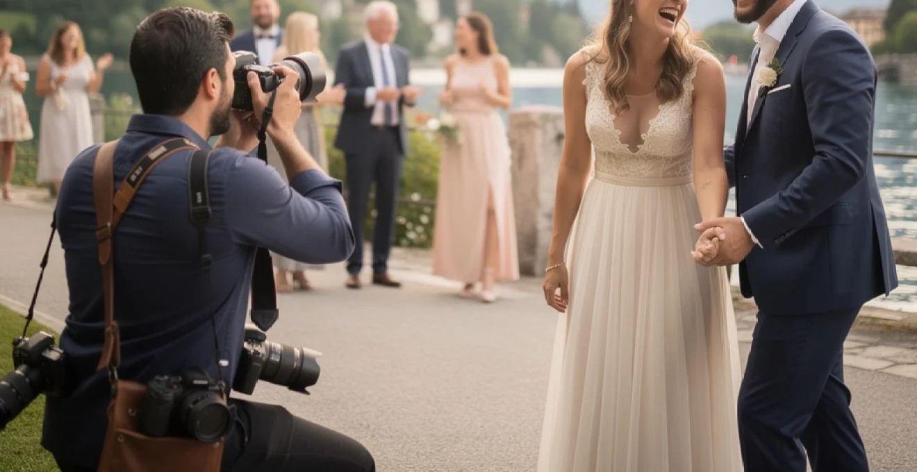 La gestion des reflets nécessite également une attention particulière, notamment lorsque vous réalisez des portraits avec le lac en arrière-plan. L’utilisation d’un filtre polarisant circulaire permet de réduire les reflets parasites sur l’eau tout en intensifiant le bleu du lac et le vert des montagnes. En plaçant les mariés de manière à ce que la lumière vienne de côté plutôt que de face ou de dos, on obtient une lumière plus modelante qui révèle les textures des tenues et les expressions du couple, tout en conservant ce rendu naturel qui caractérise un reportage de mariage à Annecy.